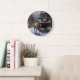 Wall Clock, 25.4 cm Round Black Wooden Frame