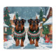 This festive design captures the joyful spirit of the holiday season, featuring an adorable dogs.Nestled in a winter wonderland, complete with a decorated Christmas tree, and beautifully wrapped presents. Snowflakes gently fall, adding a magical touch to the scene, while the vibrant colours of the holiday decorations create a warm and cheerful atmosphere.