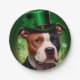 American Staffordshire dog in St. Patrick's Day Paper Plate