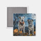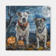 Unleash the spooky spirit with this eerie Halloween design featuring a pack of dogs under a dark, moonlit sky, surrounded by flying bats and glowing pumpkins. Perfect for those who love a touch of frightful fun with their furry friends!