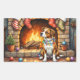 This warm and festive holiday illustration features an American Staffordshire Terrier sitting proudly beside a glowing fireplace, wrapped in colorful Christmas lights with stockings hanging above. The AmStaff’s strong build and sweet expression add charm to this cozy seasonal scene, making it perfect for breed enthusiasts and holiday décor lovers on Zazzle. A great Christmas gift idea for anyone who adores this loyal and affectionate breed.