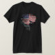 This striking patriotic dog silhouette design captures a loyal companion sitting proudly on a rocky cliff beneath a glowing moon styled with the American flag. Framed by shadowy branches and a quiet forest landscape, the scene evokes strength, loyalty, and the enduring spirit of the American dog lover.