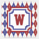 Argyle goes 8-bit and Americana with this red, white, and blue colour scheme. A light tan contrast stitch adds a touch of retro feel. Customise the monogram with the appropriate initial for a personalised touch.