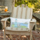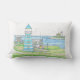 Hand Drawn Americana Lighthouse Lumbar Pillow with bright cyan on the back