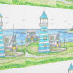 Hand Drawn Imaginary Americana Lighthouse Turqoise Wallpaper