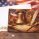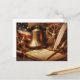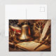 Celebrate America's 250th Anniversary with this commemorative Semiquincentennial Holiday Postcard. It features a historic image of the Constitution on parchment paper, the Liberty Bell, and the USA flag. The back side has a gold emblem symbolizing 1776-2026.