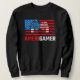Amerigamer Distressed American Flag Gamer July 4th Sweatshirt