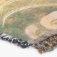 A quality printed throw has its advantages. This is a much finer weave throw than its loopier cousins, and though lighter, it is worth the investment for custom room accessorizing. The back is much prettier than the typical brown, and the fringe on the long sides very vivid, the selvage nicely done. Before photographing, I washed the throw in cold water, delicate, with a thicker woven throw the same size. On tumble dry low, this throw was dry in half the time as the other. This is a very practical quality if you use throws for furniture covers or to wrap up in frequently. The sleekness of the fabric makes it a great layer for accenting or protecting without the feeling of sitting on too much stuff. Perfect for napping or when you feel a light chill coming on. The color printing is beautiful and on this fabric, matched the design and color of my Photoshop image. This is an advantage for blending room fabrics and colors. The fringe on the short sides prints the colors from the design image and therefore varies from the side fringe. I streaked a white fractal line through the plaid pattern to give the illusion of weaving. This printed as crisp as an illusory thread, and put some white in the short side fringe, showing another advantage of print vs loomed- for artistic purposes, line lines, detail, and color integrity can be planned and preserved. My loomed throws have color limitations and more of a needlepoint texture. Print throws reproduce an exact image. The throw felt a little stiff straight out of the package, but this went away in the first delicate wash. Of course I searched the wash water for ink or bleeding and there was none.
