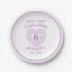 Amethyst celebrating 6 years of love simple outline heart stone line art graphics purple and white wedding anniversary paper plates. Personalise with your own wedding party details. The 6th wedding anniversary is associated with the gemstone amethyst and the heart symbolises love. Graphics and design by Sarah Trett for www.mylittleedenweddings.com on zazzle.