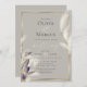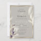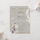 Mushroom grey with slight textured appearance and double sparkly gold frame, sets off this graceful array of ivory pampas grass. Amethyst anthurium leaves edged in gold delivers a pop of colour. Modern and trendy this wedding theme is perfect for any time of year. Modern script calligraphy combined with a minimalist, contemporary style font layout creates an eye catching design. This is part of a wedding stationery collection with matching wedding accessories. Original artwork by ©WhimsicalArtwork™ created specifically for the BarefootBride™
