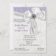 Beautiful lavender and white coloured bridal shower invitation, with a white lace like design, over a ivory coloured background. A lavender background, with white lace overlay, at the top of the invitation and the reverse side. Graphics of a white ribbon and bow, at the top, is decorated with a pretty silver tone and amethyst like jewel. Personalise all the text to suit your special event. Lovely keepsake invitation the bride to be will love.
