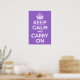 Purple and white "Keep Calm and Carry On" modern version of classic poster.