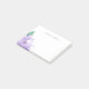 Chic personalised notes feature a single lavender purple watercolor peony flower blooming from the lower left corner, accented with a lush green leaf. Personalise with a name, company name, phrase, or text of your choice at the top in modern off-black lettering.