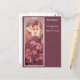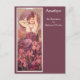 A fine art postcard with an Art Nouveau illustration by Alphonse Mucha (1860-1939), titled Amethyst. A woman with long hair against a purple background with pink irises in the foreground. Mucha's precious stones collection includes Topaz, Ruby, Amethyst and Emerald. The series is known for its typical Mucha qualities: beautiful women with suggestive gestures, decorative use of flowers, flowing hair, and subtle yet striking colours. These elements combine to create a compelling harmony intended to inspire and elevate the viewer.