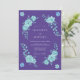 A beautiful arrangement of aqua-hued blossoms and leaves graces a rich amethyst backdrop. The floral motif evokes a sense of enchanting romance and delicate beauty, perfect for a dreamlike occasion. This design features roses and flowing greenery.