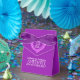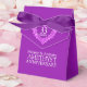 Amethyst wedding anniversary gift box. Personalise with your names. Great to add a touch of personalised bling to your Amethyst wedding anniversary party, dinner parties and informal gatherings. Ideal gift packaging for gifting. Purple and white Amethyst heart effect art and design by Sarah Trett. www.sarahtrett.com