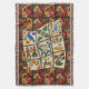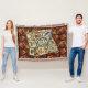 What a bonanza for quilting fans! The original digital painting by Leslie Sigal Javorek featured on this blanket begins w/ an Amish Wedding-Ring pieced quilt design using plaid patterns in autumn shades of olive green, red, maize, & rusty brown. Laid across this base is a smaller 9-block traditional story-telling quilt w/ multi-coloured appliques on raw muslim.