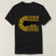 This is a mens t-shirt that features the words “Keep Life Simple” in a unique print font with black and yellow letters with a black/yellow sunflower