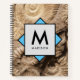 This paleo-themed notebook is decorated with a cool photo of some prehistoric spiral ammonite sea shells. Type your name and initial into the boxes above, and they will appear on the central decorative square!