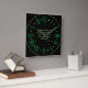 This wall clock boasts the "Amos 5:14" KJV bible scripture verse in a unique print with green letters buff outline plus bible citation from the King James version inside of green Roman numeral numbers with buff accents black background. This clock is made for any wall and printed with a AcryliPrint®HD process measures 10.75" x 10.75" and made from grade-A acrylic. Battery operated uses one AA battery for Indoor use only, not recommended for outdoor use.