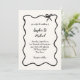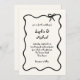 This chic and elegant wedding invitation features a hand drawn, wavy illustrated frame with a bow, and stylish handwritten script for a Parisian or French style wedding invitation. This classic colour option is ivory and black.