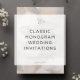 Personalise this classic and elegant wedding invitation with your monogram or duogram joined by a decorative script ampersand. Add your wedding details beneath in timeless black lettering with calligraphy script accents, overlaid on a favourite vertical photo with an opaque layer for text contrast. A beautiful choice in classic black and white for formal weddings in any season.