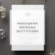 Personalise this classic and elegant wedding invitation with your monogram or duogram joined by a decorative script ampersand. Add your wedding details beneath in timeless black lettering with calligraphy script accents. A beautiful choice in classic black and white for formal weddings in any season.