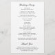 Elegant black and white budget wedding program (printed on flyer paper) featuring a simple and minimal design with a large ampersand behind the names of the bride and groom in a traditional serif font. A classic choice that is perfect for a formal wedding.
