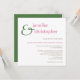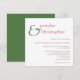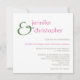 ColorScheme Wedding Basics contemporary wedding invitation. 5.25" x 5.25" flat cards with white envelopes. Text and reverse in wedding colours fern green and thulian pink.