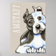 Show your love for this breed or treat a friend displaying this art of a blue/white American Staffordshire Terrier in a curious pose. From Andie's original ink/pencil illustration.