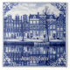 Amsterdam canal houses Delft Blue style ceramic tile. Generative content with photography by Velvet Escape.