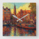 Amsterdam canal houses van Gogh style Square Wall Clock