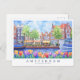 Amsterdam Canal & Tulips Watercolor Travel Postcard