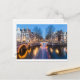 A view of the Amsterdam Canals at Night with the trail of boats going past