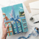 It’s a clear day in Amsterdam, Holland on this street of apartment buildings and businesses. Birds circle overhead looking for choice pickings floating on the canals. An ancient nautical city interspersed with boats, bicycles and various forms of ground transportation. Three boats in a canal dock on the side. This elegant but fun wrapping paper has many matching pieces to coordinate your entire apartment or home in the calming Holland theme.