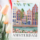 Postcard featuring an illustration of a beautiful town by the lakeside in Amsterdam.
