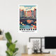 Celebrate the vibrant soul of the Netherlands with this striking Amsterdam Travel Art Poster! This design features a modern, graphic take on the city's famous canal-side architecture, complete with parked bicycles and a foreground of blooming red and yellow tulips. The bold, contemporary typography makes this a standout piece for any modern home.