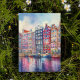 This postcard features a watercolor portrait of Amsterdam, Netherlands.