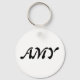 Basic button key chain with the name "AMY" on it. Text is in Black colour as default but you may Customise the Font Colour as well as key chain background colour.