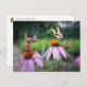 An acorn elf is taking a picture of a butterfly on a flower. - funny postcrossing postcard