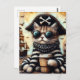An Adorable Pirate Cat With A Coffee Encaustic Postcard