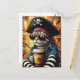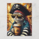 AI generated art of an adorable cat pirate in a vintage bookshop holding a coffee