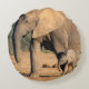 An African Elephant mother and calf on the move Round Cushion