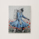 an astronaut in a blue dress walking in poppies jigsaw puzzle
