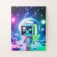 A very young astronaut is in outer space, on a training mission - on a jigsaw puzzle. 30 oversized pieces.