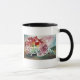 Cup with a watercolor painting of amaryllis in a crystal bowl with black trim around the rim and handle of the cup.