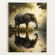 Elephant planner. A pretty serene ai illustration of an elephant standing in the forest reflecting in the water. A calm tranquil piece of art to help you relax. The back has a pattern of elephants.