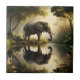 A pretty serene ai illustration of an elephant standing in the forest reflecting in the water.