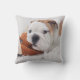 An English Bulldog Puppy Playing With A Bulldog Cushion