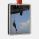 An explosive ordnance disposal technician fast ropes onto the flight deck of the USS Ronald Reagan